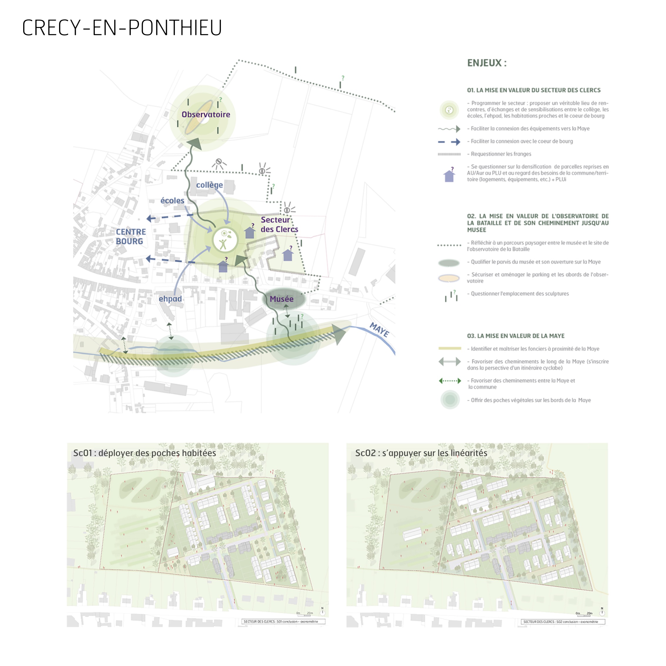 Les études confiées portent sur trois communes retenues pour la diversité des contextes et situations qu’elles représentent au sein de la communauté de communes du Ponthieu Marquenterre. Elles consistent en une déclinaison opérationnelle des stratégies d’action et d’aménagement résilient sur des sites-projets expérimentaux. L’objectif étant d’en tirer les enseignements pour nourrir une vision prospective et partagée avec les acteurs du territoire : atteindre un équilibre entre valorisation du littoral et de l’avant-pays, affirmer de nouveaux points de centralité, leur mise en réseau et leur capacité à mailler le territoire, attirer de nouveaux habitants (néo-ruraux) par une offre de services adaptée et un cadre de vie favorable à leur épanouissement, pérenniser la présence sur le territoire de franges de populations ayant des difficultés à trouver une offre qui leur corresponde (jeunes / personnes âgées en perte d’autonomie …).