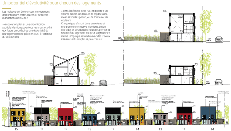 L’expression architecturale des deux opérations «collectifs et individuels» est simple et contemporaine. Les volumes sont compacts, sans découpages, ni creux, ni excroissances pour une meilleure optimisation des performances énergétiques.