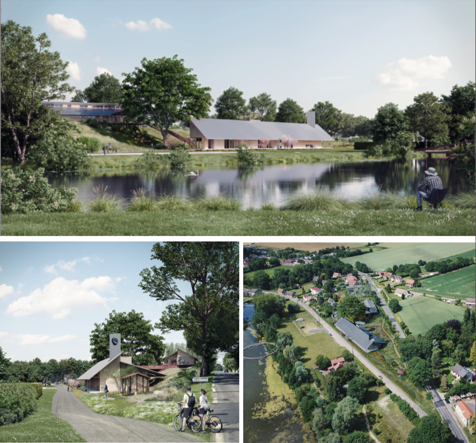 Dans un très beau site dessiné par les boucles de la Somme, le projet se pose délicatement sur les coteaux, face aux marais.